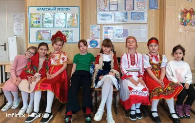 На масленичной неделе каждый класс выбирал свой формат встречи весны. Кто-то устроил чаепитие, кто-то — спортивные состязания. А юные орлята из 2 «А» решили подойти к празднику особенно торжественно и проводили зиму в национальных костюмах.