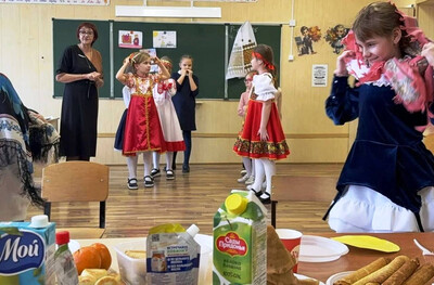 На масленичной неделе каждый класс выбирал свой формат встречи весны. Кто-то устроил чаепитие, кто-то — спортивные состязания. А юные орлята из 2 «А» решили подойти к празднику особенно торжественно и проводили зиму в национальных костюмах.